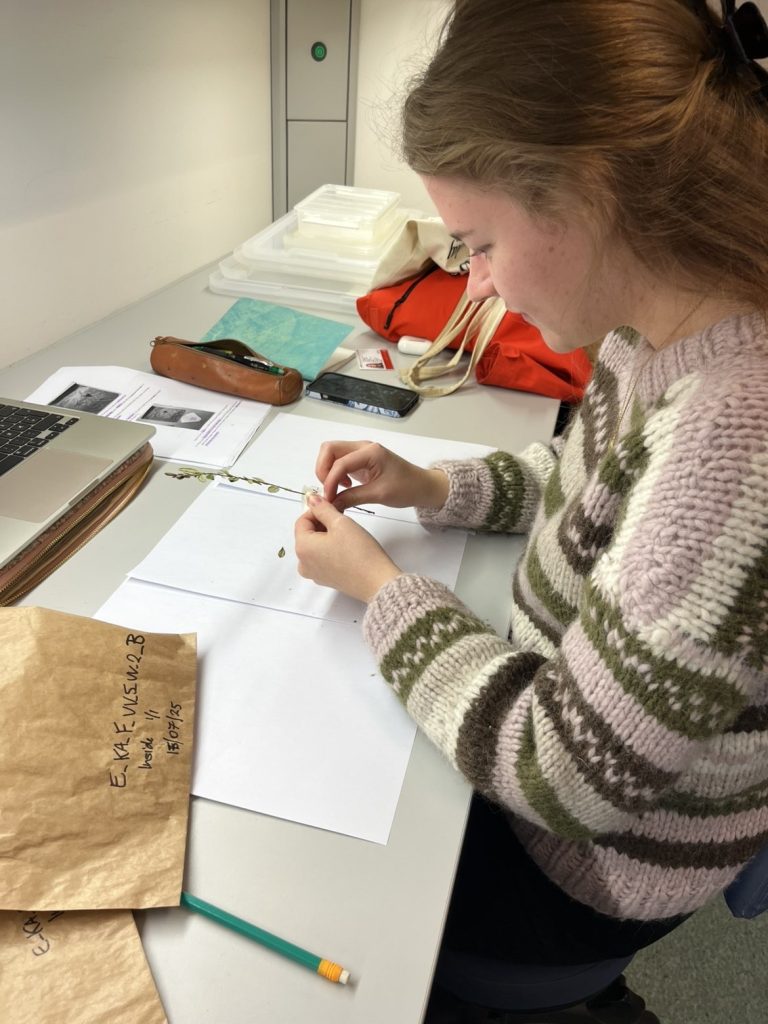 Meg og Victoria endte opp i DURIN-prosjektet i Between the fjords, hvor de forsker på arter fra lyngfamilien i flere områder i Norge. Jeg fikk lov til å jobbe med en av dem, nemlig tyttebær! Visste du at det vitenskapelige navnet for tyttebær (Vaccinium vitis-idaea) kan oversettes til «vin fra berget»?* Meg og Victoria hadde hver sin del vi skulle jobbe med, jeg hjalp henne med litterbags på lab, og hun hjalp meg med å separere blader og stengel. Dette semesteret har jeg på en måte fått være med på to prosjekter! Vi brukte mange timer på labarbeidet. Til tider var dette veldig kjedelig, men vi har også lært hva det innebærer å være en forsker.