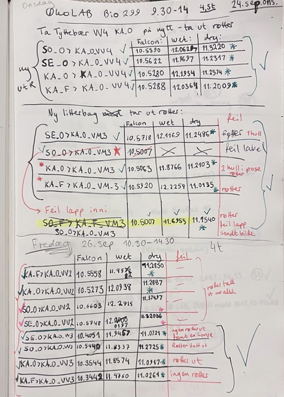 Meg og Victoria endte opp i DURIN-prosjektet i Between the fjords, hvor de forsker på arter fra lyngfamilien i flere områder i Norge. Jeg fikk lov til å jobbe med en av dem, nemlig tyttebær! Visste du at det vitenskapelige navnet for tyttebær (Vaccinium vitis-idaea) kan oversettes til «vin fra berget»?* Meg og Victoria hadde hver sin del vi skulle jobbe med, jeg hjalp henne med litterbags på lab, og hun hjalp meg med å separere blader og stengel. Dette semesteret har jeg på en måte fått være med på to prosjekter! Vi brukte mange timer på labarbeidet. Til tider var dette veldig kjedelig, men vi har også lært hva det innebærer å være en forsker.
